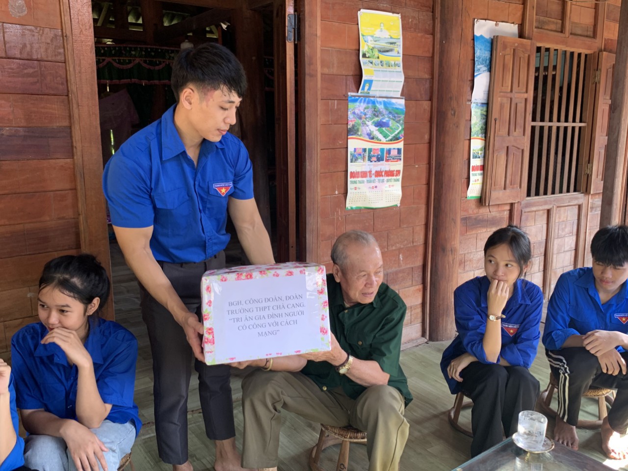 Thấm nhuần đạo lý truyền thống “Uống nước nhớ nguồn”, “Đền ơn đáp nghĩa” của dân tộc và thấu hiểu sâu sắc giá trị của sự hy sinh, cống hiến to lớn của các anh hùng liệt sỹ, thương binh đối với đất nước. Đại diện BGH, Công đoàn, Đoàn viên thanh niên Trường THPT Chà Cang đã tổ chức thăm hỏi, động viên các gia đình thương binh liệt sĩ: tại gia đình ông Khoàng Văn Xóm và ông Lò Văn Ơn tại Bản Mới 1 – Xã Chà Cang.