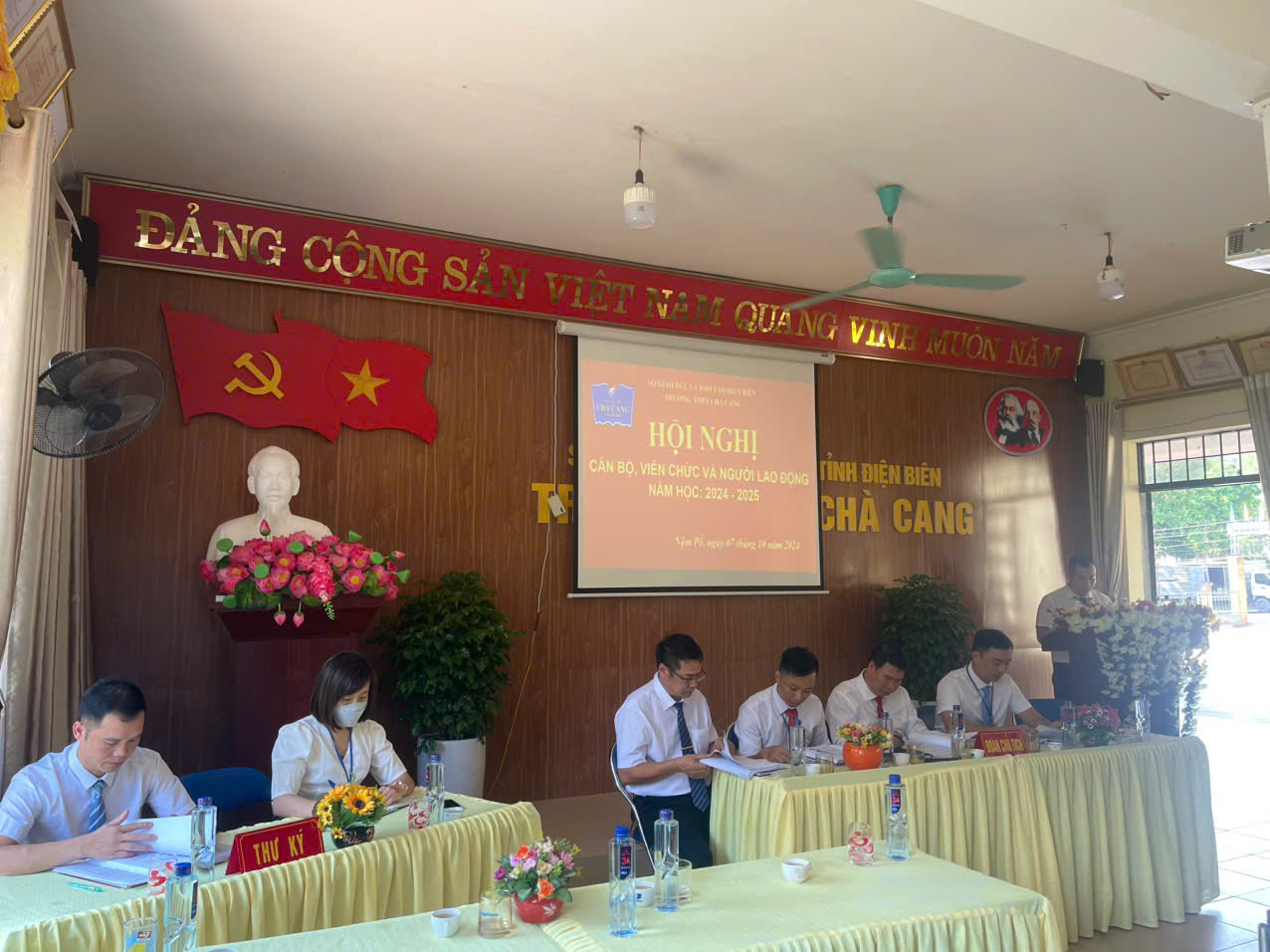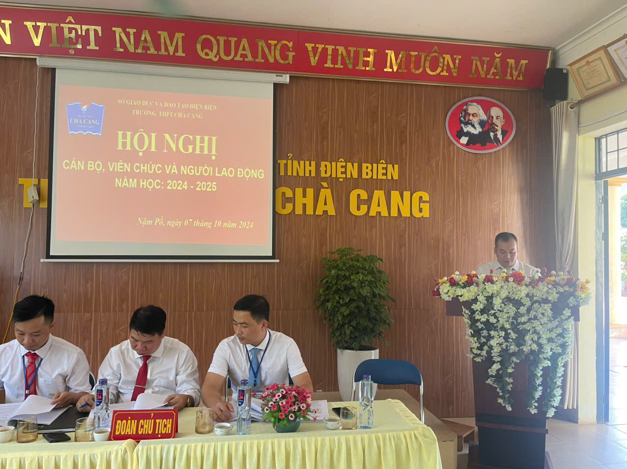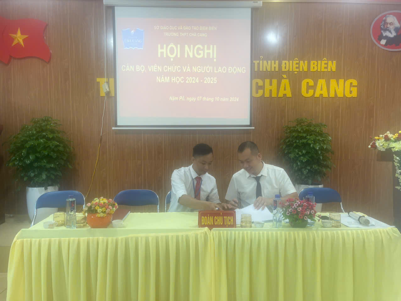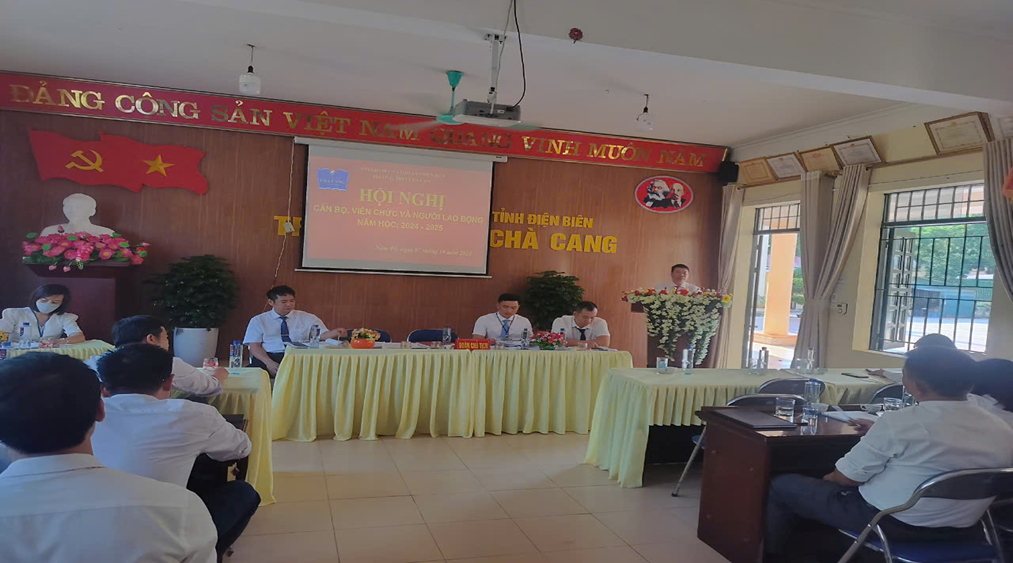 Dưới sự chủ trì nghiêm túc và sáng suốt của Đoàn Chủ tịch, đoàn Thư ký Hội nghị đại biểu CBVC và người lao động trường THPT Chà Cang năm học 2024 - 2025 đã diễn ra trong không khí trang trọng, phát huy được tính dân chủ, sôi nổi và tích cực. Tại Hội nghị đồng chí Vũ Trọng Vinh – Bí thư Chi bộ, Hiệu trưởng nhà trường đã thông qua Báo cáo kết quả thực hiện Nghị quyết Hội nghị CBVC năm học 2023 - 2024 và phương hướng nhiệm vụ của năm học 2024 – 2025; Báo cáo công khai tài chính cũng được thông qua; Báo cáo kết quả hoạt động công tác Công đoàn năm học 2023 – 2024; Phương hướng nhiệm vụ công tác Công đoàn năm học 2024 – 2025 của đồng chí Vương Văn Quyết Chủ tịch công đoàn nhà trường. Và Báo cáo tổng kết hoạt động của Ban thanh tra nhân dân năm học 2023 – 2024 do đồng chí Đặng Văn Dũng – Trưởng ban TTND trình bày. Hội nghị cũng đã thông qua các Quy chế chuyên môn, Quy chế thi đua, Quy chế chi tiêu nội bộ, công tác phối hợp làm việc giữa các bộ phận và tổ chức Đoàn thể nhà trường... Hội nghị cũng đã lựa chọn và bầu ra Thư ký giáo dục nhiệm kỳ 2024 – 2025.