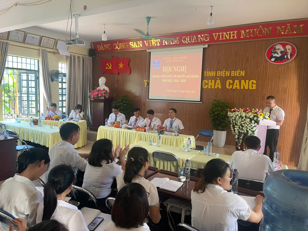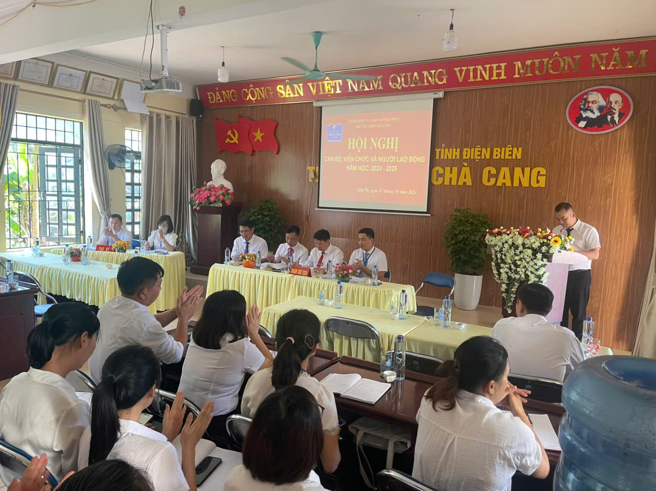 Hội nghị CBVC và Người lao động là hoạt động thường niên của năm học và cũng là dịp quan trọng để các đồng chí giáo viên, cán bộ, nhân viên trong nhà trường được nói lên những suy nghĩ, tâm tư nguyện vọng của bản thân, tham gia đóng góp về phong trào thi đua các mặt hoạt động giáo dục của nhà trường, góp phần xây dựng trường học vững mạnh, minh bạch, công bằng và ngày càng phát triển. Với tinh thần đó, Hội nghị Cán bộ, viên chức, người lao động năm học 2024 – 2025 của Trường THPT Chà Cang đã diễn ra tốt đẹp, nghiêm túc, khẩn trương với 100% ý kiến đồng nhất với các chỉ tiêu thi đua lớn của năm học 2024 – 2025. Đồng thời, đã mở ra một không khí thi đua sôi nổi, với tinh thần Đoàn kết - Chủ động – Sáng tạo – Thân thiện – Thắng lợi, tập thể sư phạm trường THPT Chà Cang với niềm tin, quyết tâm đồng lòng thực hiện xuất sắc mọi nhiệm vụ và đạt nhiều thắng lợi trong năm học 2024 - 2025.